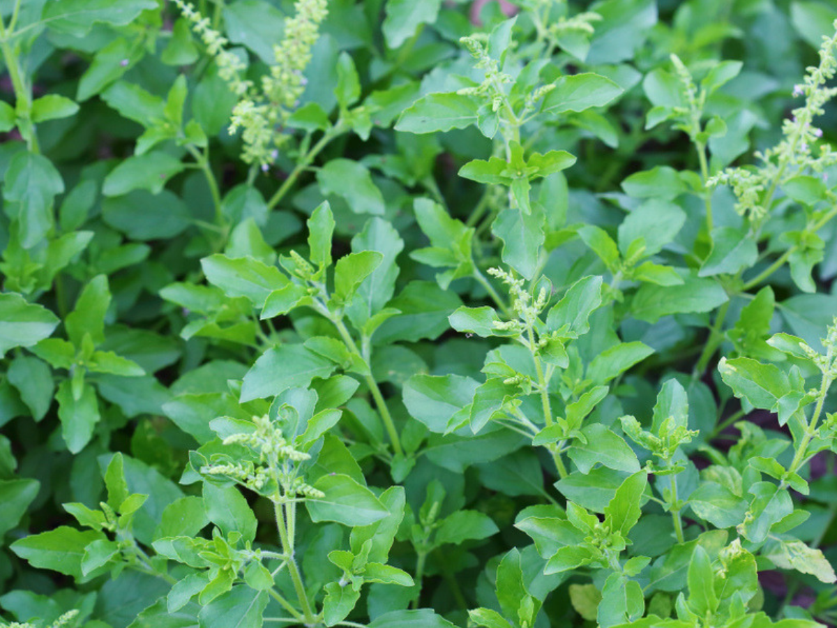 Color: Green leaves with a mild aroma Taste: Sweet and soothing Benefits: Stress relief, immunity boosting, respiratory support. Use Case: Herbal teas, ayurvedic medicines, skin care. Specialty: Most commonly used variety in Ayurveda.